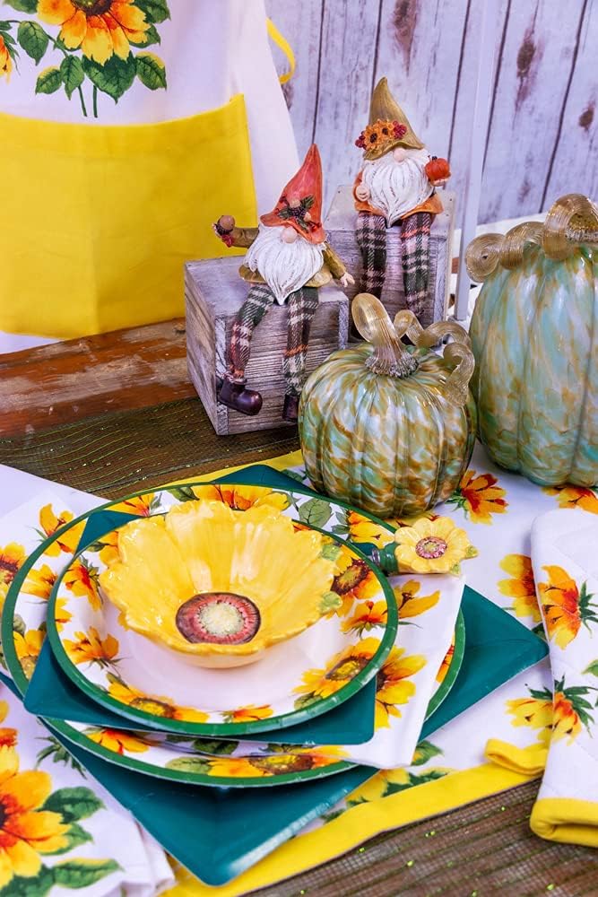 - FALL AUTUMN TABLE DÉCOR White napkins with golden sunflowers