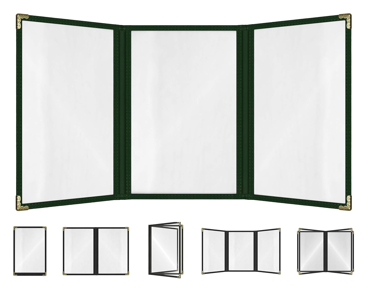- ✅Stylish & Durable Design: The Green, 25 Pack, 3 Pages / 6 Views Trifold Menu Cover is a premium, stylish solution for displaying your menus. Made with crystal-clear vinyl, it offers excellent durability and visibility of your menu items.