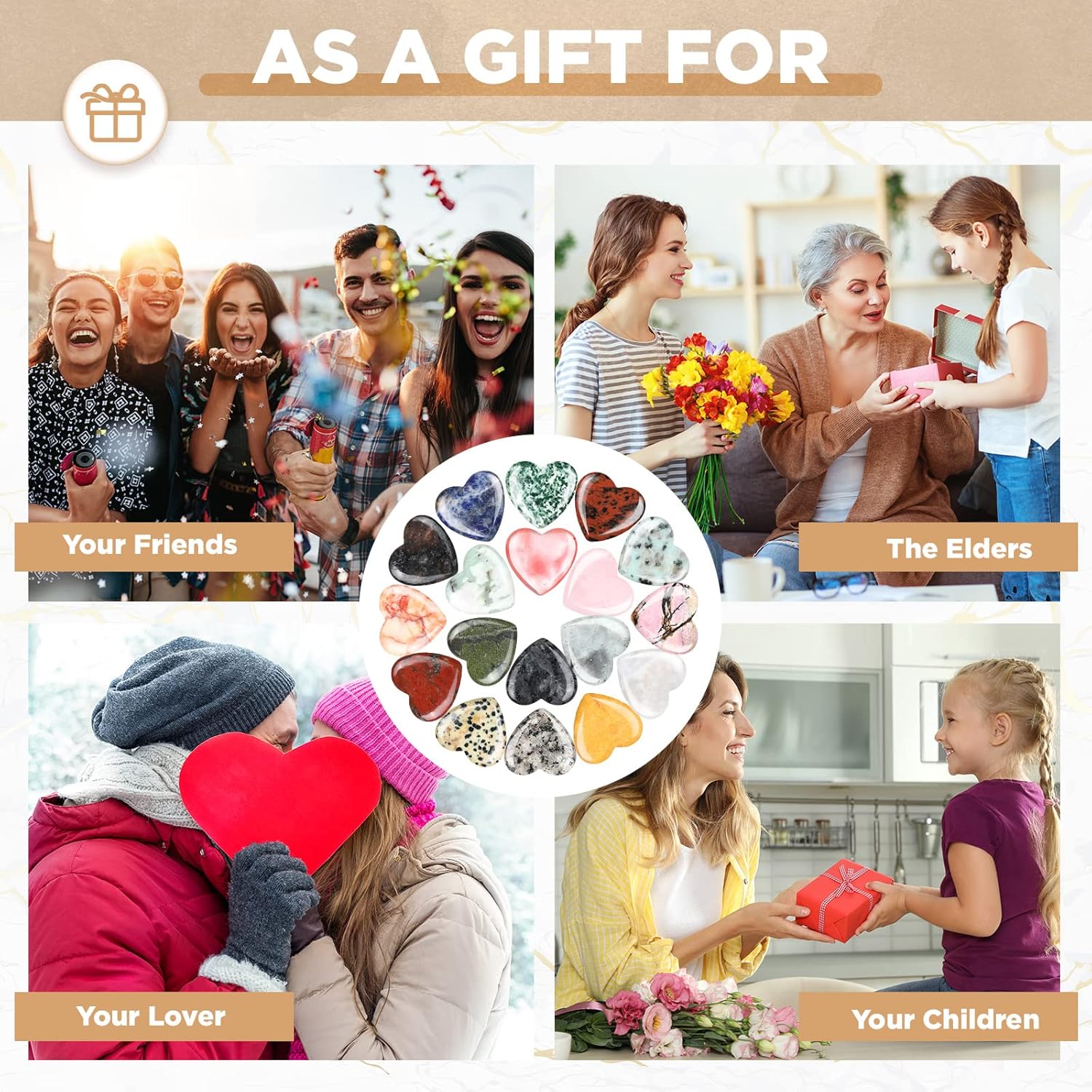 Nuenen 30 Pcs Heart Shape Crystals Bulk 1.2 Inch Gemstone Heart Stones Worry Stone Rocks Quartz Love Pocket Palm Bulk for Mother's Day Gifts Stress Relief Gift (Vintage Color)