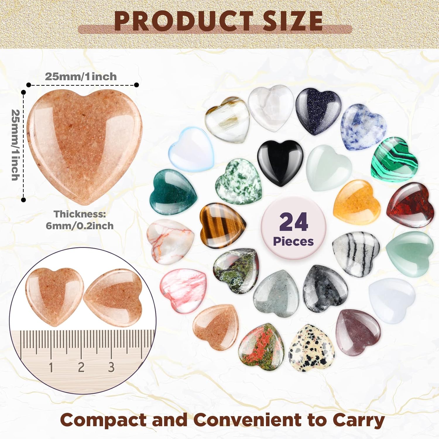 Nuenen 24 Pcs 1 Inch 25mm Natural Heart Shaped Stones Crystals and Gemstones Worry Stones Bulk Love Crystals Set Heart Shaped Rocks Pocket Palm Stone for Stress Reiki Balancing Home Decoration Yoga
