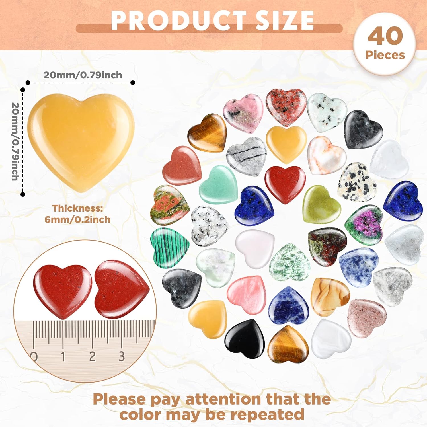 - Compact and Portable: each heart shaped crystal measure approx. 0.8 x 0.8 x 0.2 inch/ 20 x 20 x 6 mm, a compact size allowing you to easily put them in your pocket, bag or purse, without occupying storage space; Please note the size and color may be slightly different due to the characteristics of natural materials