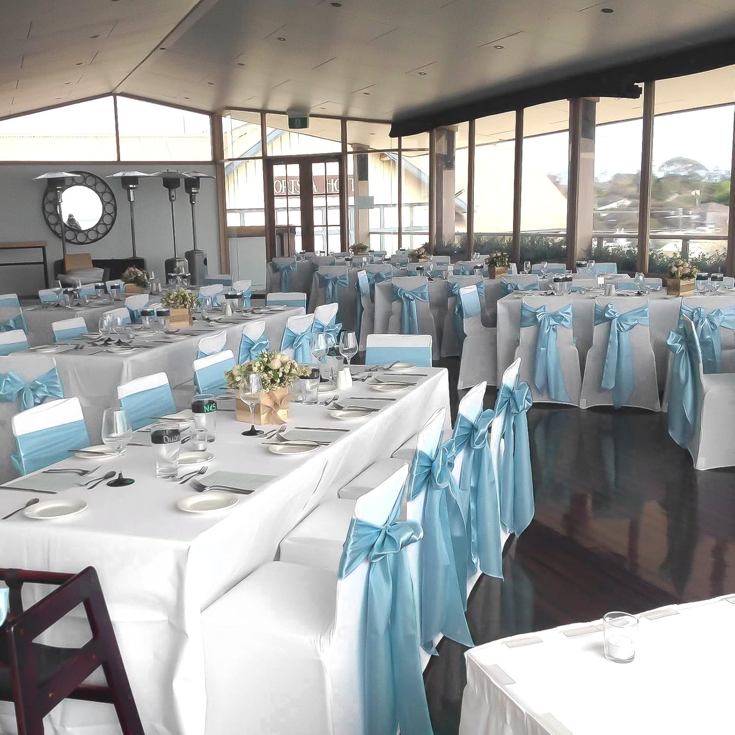 fani 60 PCS Baby Blue Satin Chair Sashes Bows Universal Chair Cover for Wedding Reception Restaurant Event Decoration Banquet,Party,Hotel Event Decorations (7 x 108 inch)