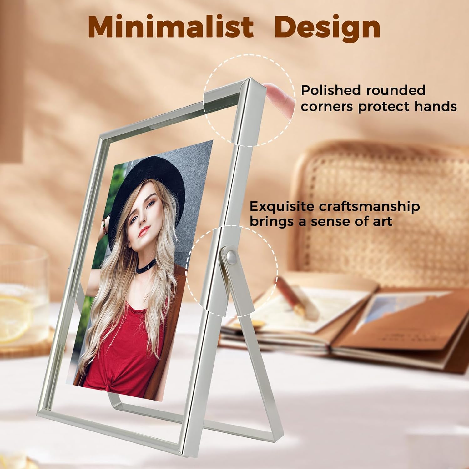 Silver Floating Frame (6"x8", Vertical), For Picture 5x7, 4x6, 3x5, Small Desktop Photo Frame, Classy Gift For Festival, Wedding, Home or Office Décor