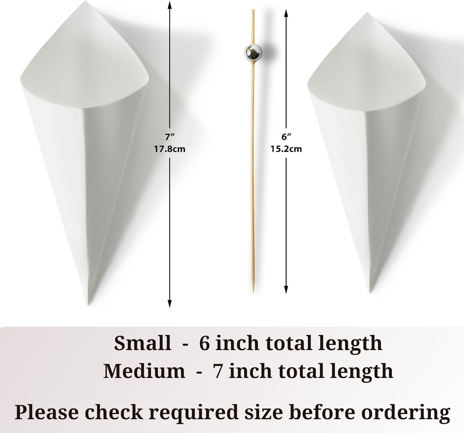 MONTX® 200-Pack Disposable Food Cones | 7" or 6" | White Food-Safe Paper Charcuterie Cones for Appetizers, Popcorn, Snacks, Confetti | Eco-Friendly Alternative to Wood Cones (6 Inch)