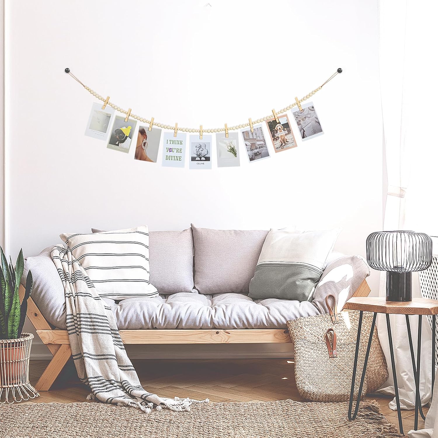 - High-Quality Material: Photo garland is handmade by quality wood and jute rope, which is durable, corrosion-resistant and non-toxic, not easy to break and fade, can be applied for a long time. Natural wood beads have a polished finish that is smooth. You can paint and color it to complete your personalised decoration