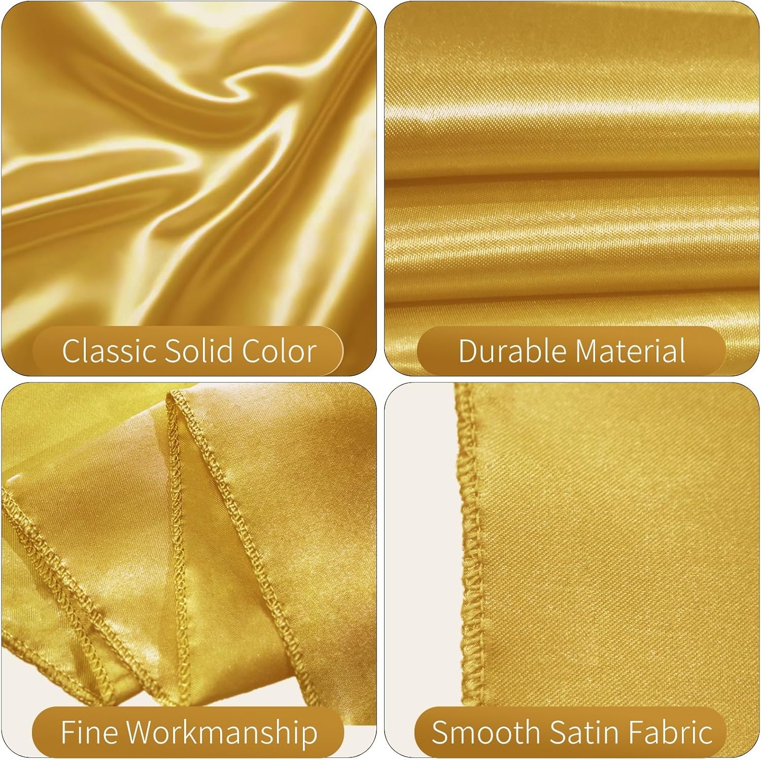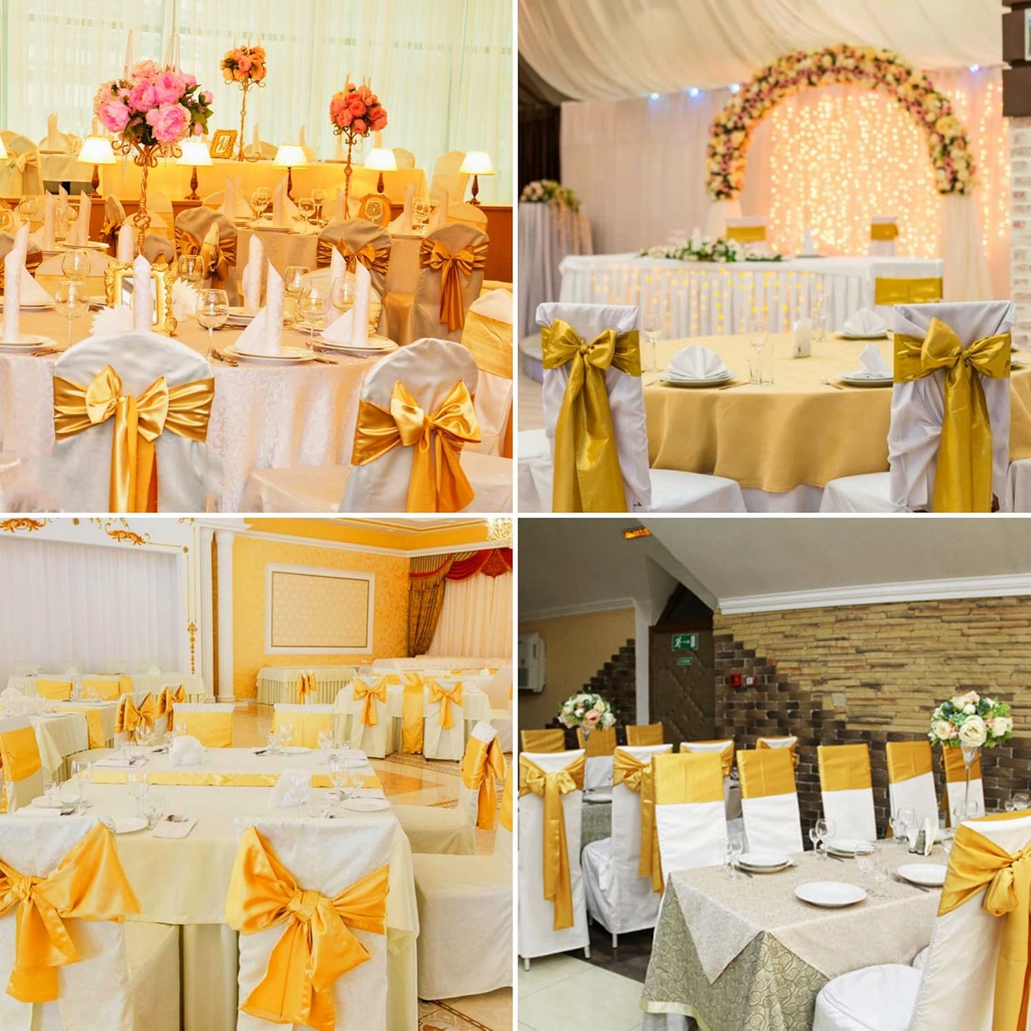 50 PCS Satin Chair Sashes Bows Decorative Universal Chair Cover Chair Ribbon Ties Back Sash for Wedding Party Ceremony Reception Hotel Events Banquet Restaurant Home Kitchen Decor(7 x 108 inch,Gold)