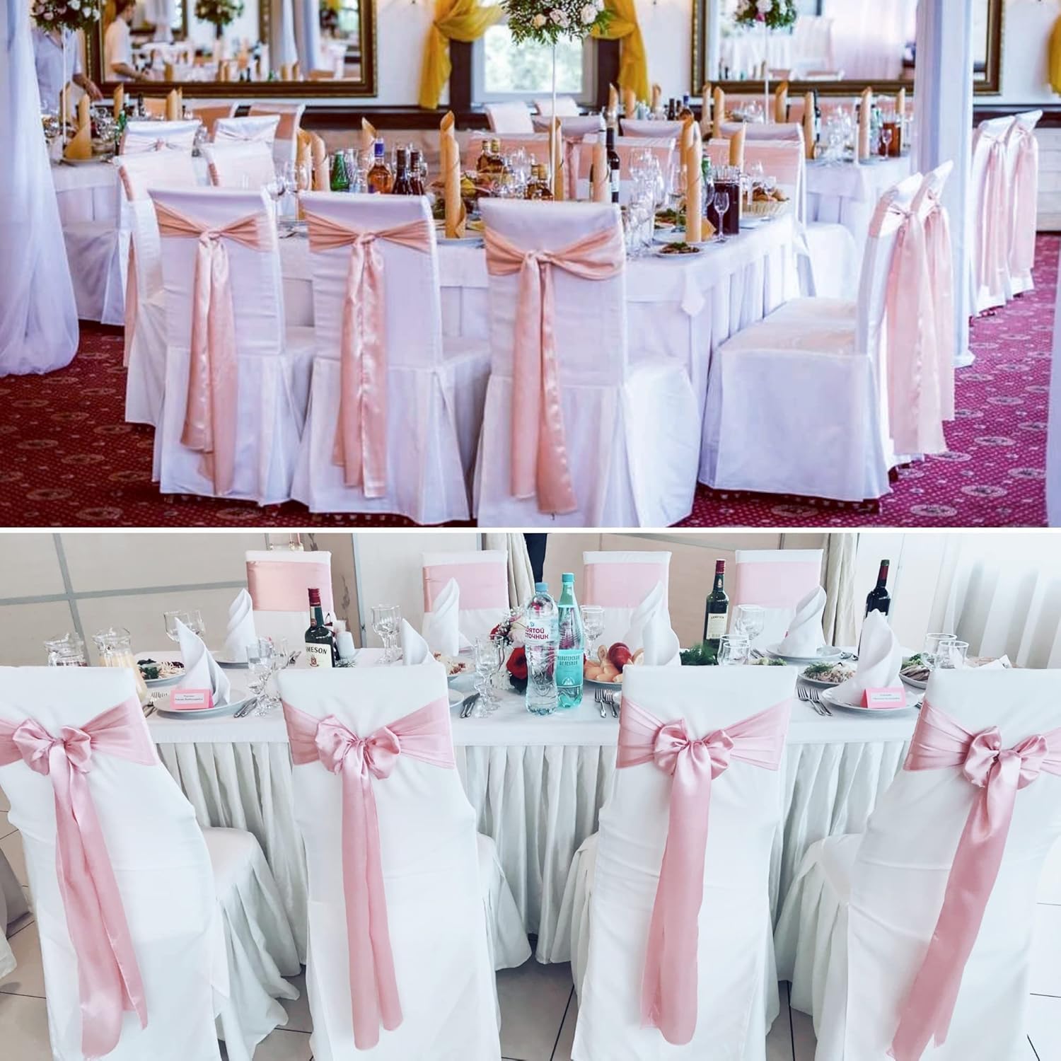 - 【Widely Use】The satin chair sashes ties can be tied into chairs or used as table runners, perfectly match with other party decorations. The multifunctional chair sashes are perfect for various events, such as wedding, receptions, banquets, birthday party, bridal and baby shower, sweet heart, engagement ceremony, dinners, candy buffets, dessert tables, weddings arch, dance wear, celebrations, ceremonies, exhibition events, theme party, Christmas, Valentine's Day, Easter, Thanksgiving, Halloween
