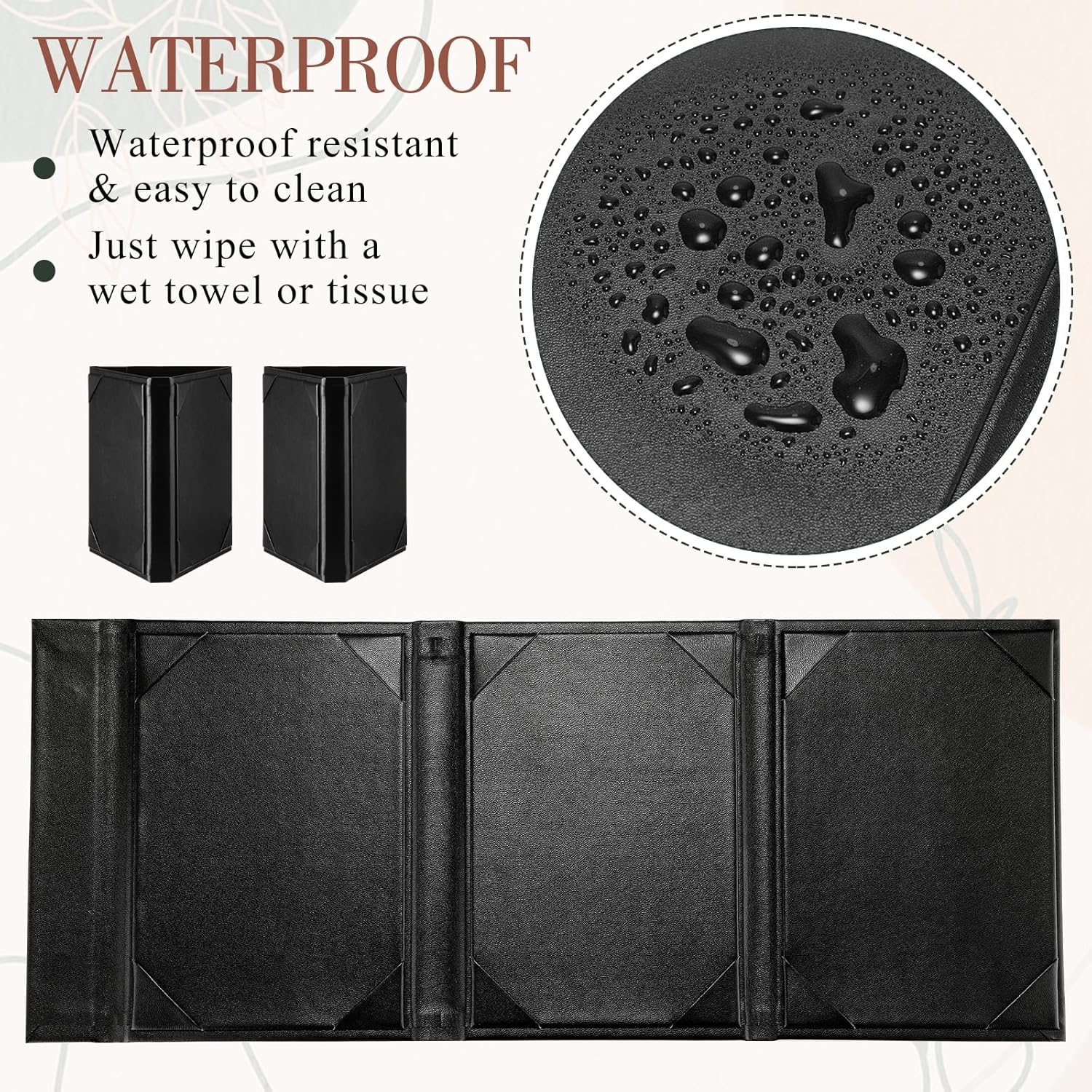 - Convenient and Reliable: crafted with PU artificial leather, these table display menu holders are built to endure frequent use and daily wear and tear; Their durability ensures they maintain their sleek appearance and functionality even with constant handling; Keep your menus safe from stains, spills, and scratches