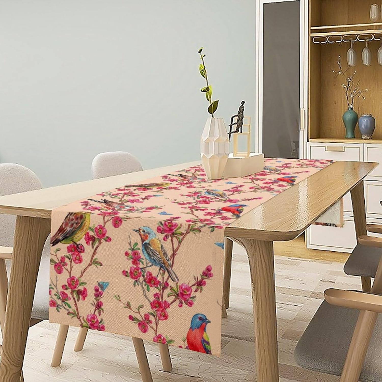 Floral Butterfly Table Runner Seasonal Spring Flower Bird Table Decoration Table Runner for Home Party Decoration 13x90 Inch