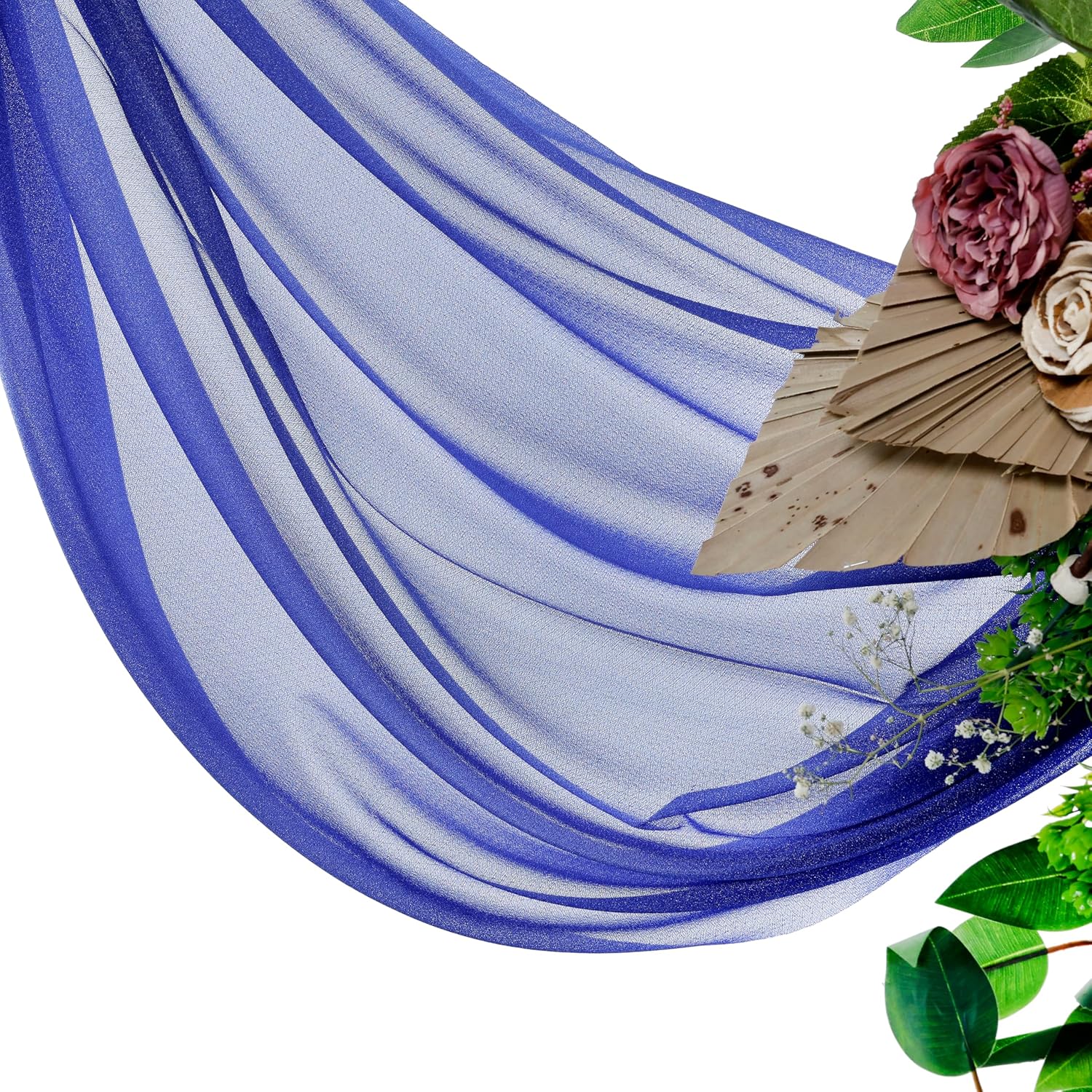 VDS Pack of 3 Panel (30 Inch X 20 Feet) Wedding Arch Draping Fabric Sheer Chiffon Fabric Drapery for Wedding Ceremony Reception Swag Backdrop Canopy Chuppah ARBO Altars Decoration (Royal Blue)
