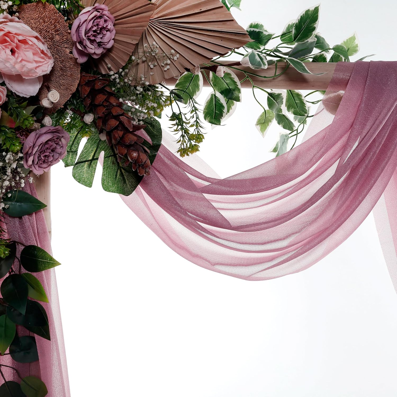 VDS Pack of 4 Panel (30 Inch X 20 Feet) Wedding Arch Draping Fabric Sheer Chiffon Fabric Drapery for Wedding Ceremony Reception Swag Backdrop Canopy Chuppah ARBO Altars Decoration (Mauva)