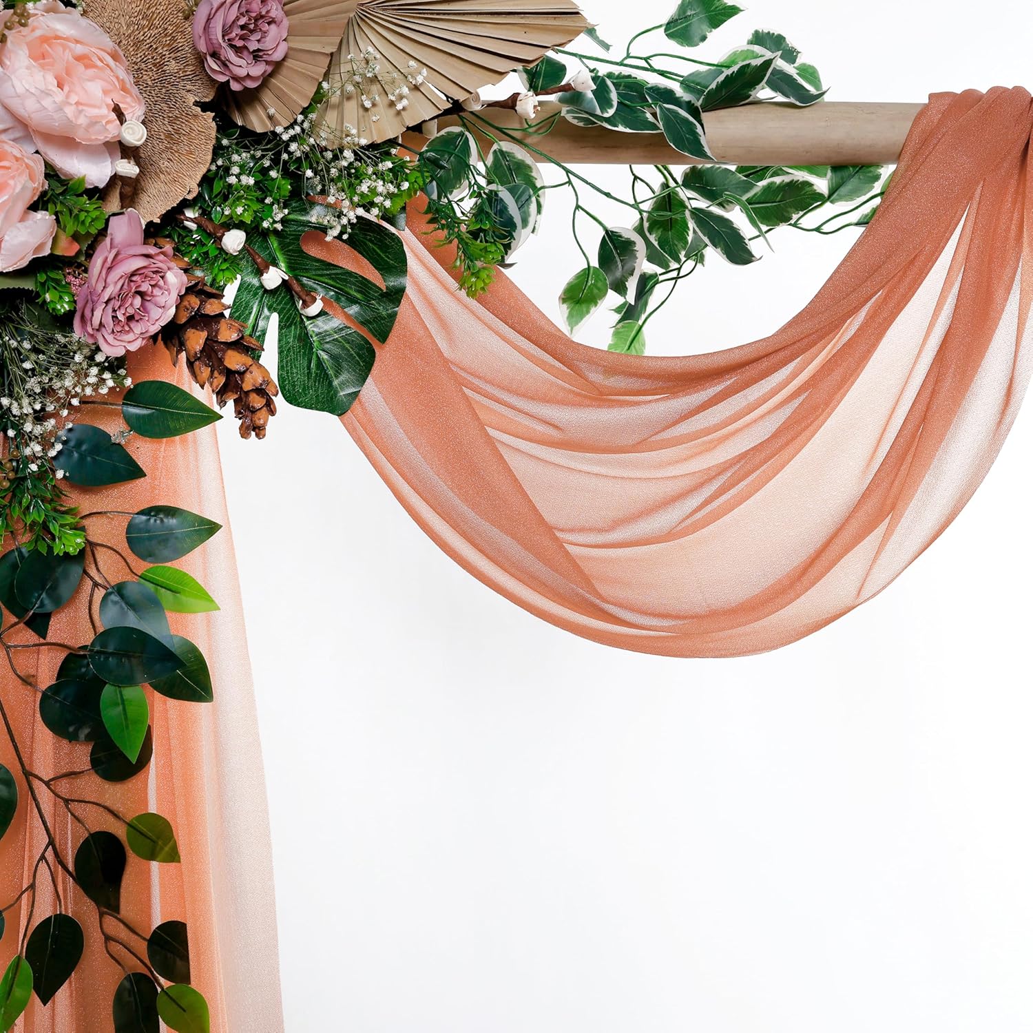 VDS Pack of 4 Panel (30 Inch X 20 Feet) Wedding Arch Draping Fabric Sheer Chiffon Fabric Drapery for Wedding Ceremony Reception Swag Backdrop Canopy Chuppah ARBO Altars Decoration (Coral Peach)
