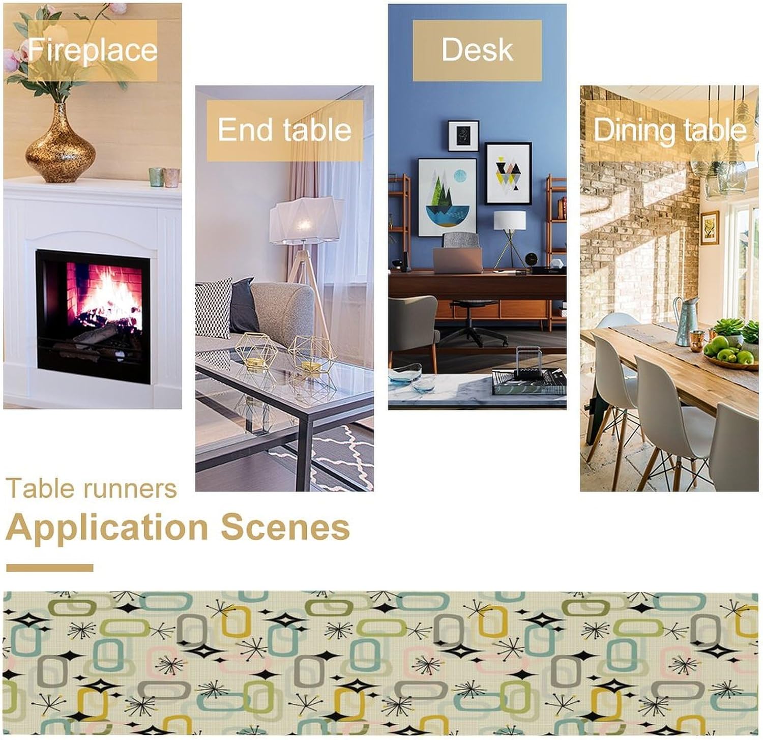 Mid Century Table Runner, Flag Retro Atomic Starburst 1950s Abstract Geometric Space Tabletop Decoration for Home Kitchen Restaurant Table Flag 13x60 Inch