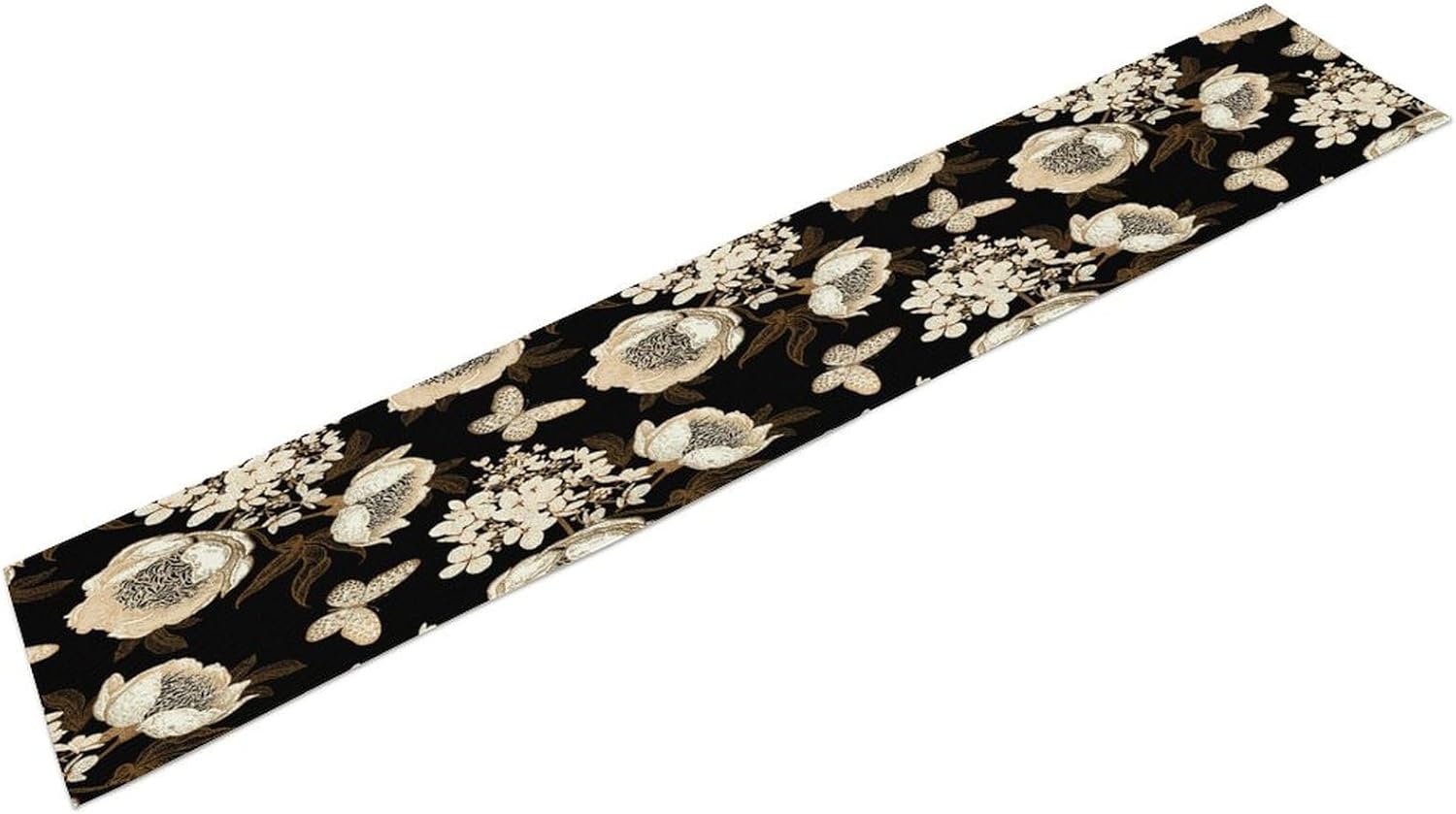 Watercolor Peony Table Runner, Modern Kitchen Dining Room Bohemian Floral Tabletop Decoration for Kitchen Cafe 13x90 Inch