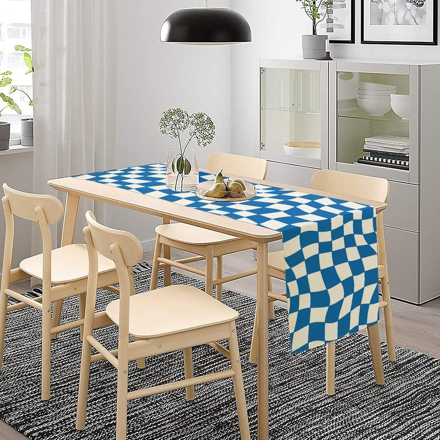 Table Flag Retro Plaid 60s70s Blue Plaid Table Flag Kitchen Restaurant Decoration Suitable for Indoor and Outdoor Festival Home Wedding Party Table Flag 13x70