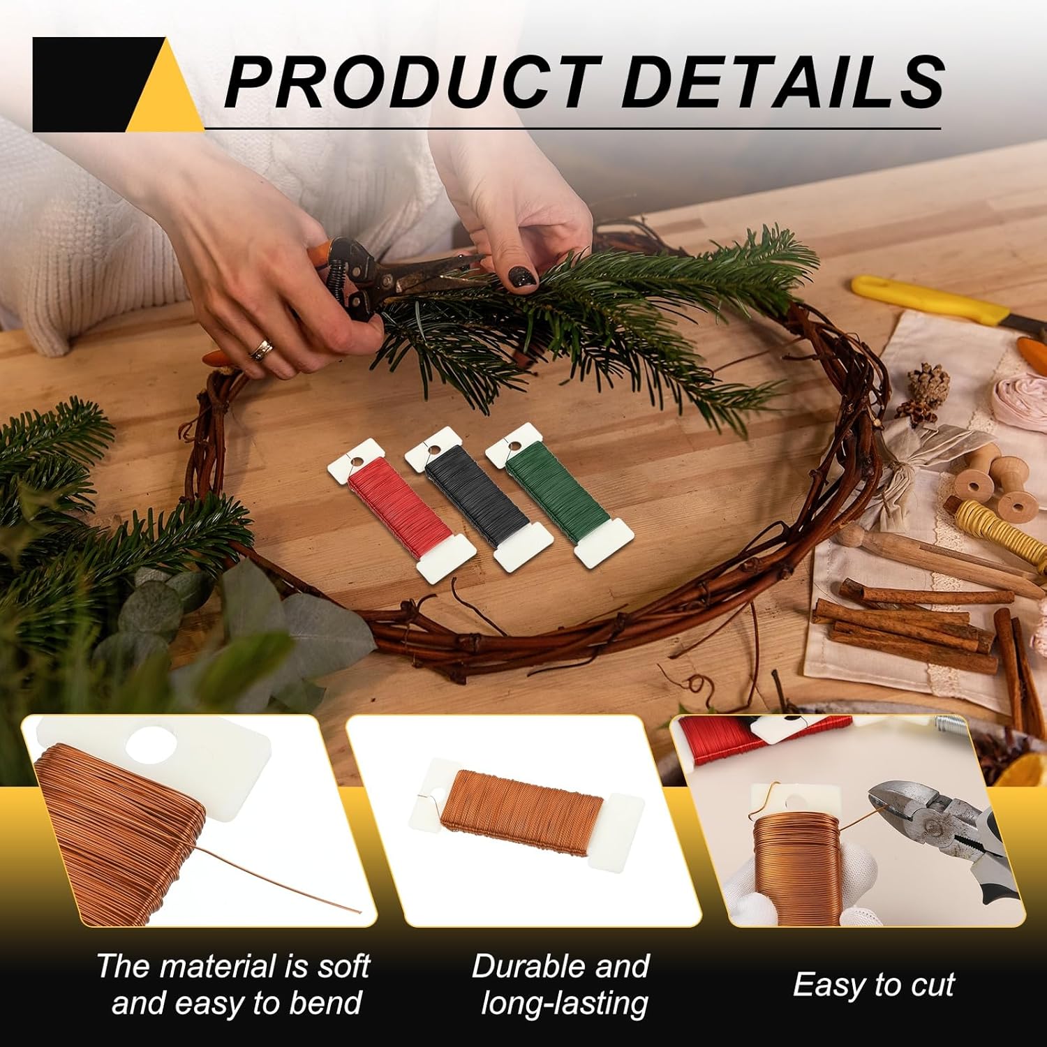 - This floral wire is suitable for various holiday decorations, such as making Christmas wreaths, hanging Christmas ornaments, and tying bouquets to help you secure the position of fresh flowers and prevent them from scattering. It can also be used to create exquisite potted plant art, bows, crafts, and more.